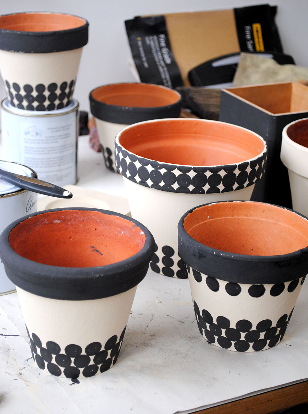 I bought a job lot of terracotta pots on ebay recently. To be honest, I was secretly hoping I would lose the bid to somebody else, as the pots were in Reading and I am in London. However, I did indeed win the auction and so arose very early on a very rainy Sunday morning and set off up the motorway. My map reading skills, which are normally pretty good, failed me completely and the very nice man who I bought them from sweetly drove to find me (parked up in the car park of an industrial estate, still in the pouring rain!)