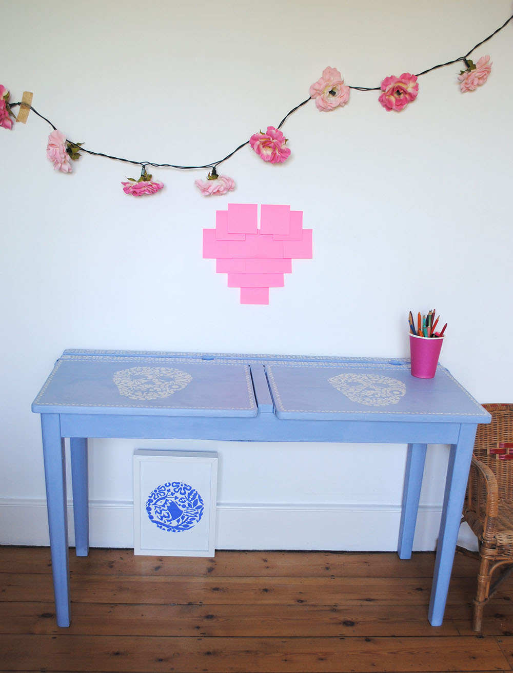 I am quite in love with this piece and can imagine two little siblings keeping their special things in their own desk. I also love the fact that it has been saved from destruction.