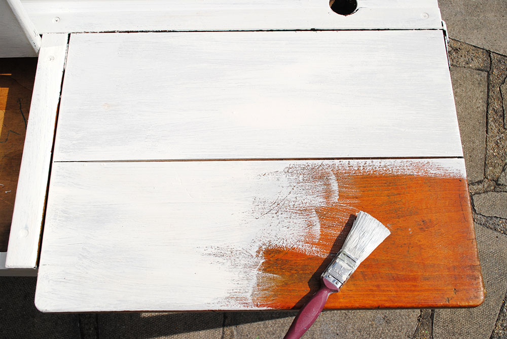 I spotted this sweet old school desk in the driveway of a house with a sold sign outside. I knocked on the door and a very sweet woman told me it had been in the garage for years and her children were all grown up now. It was in a bit of a state and I don’t think she could understand why I wanted it, but seemed pleased that it wasn’t going to end up at the tip.