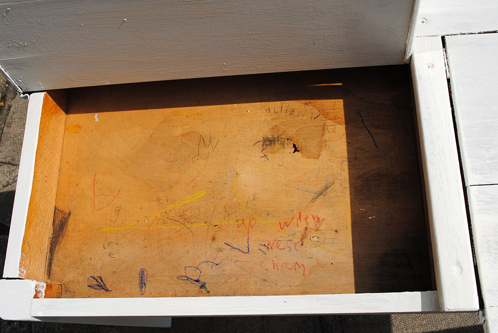 There was some grafitti on the inside and West Ham (football club) had been scribbled in child’s writing. It seemed a shame to paint over it, but at least I photographed it before hand.