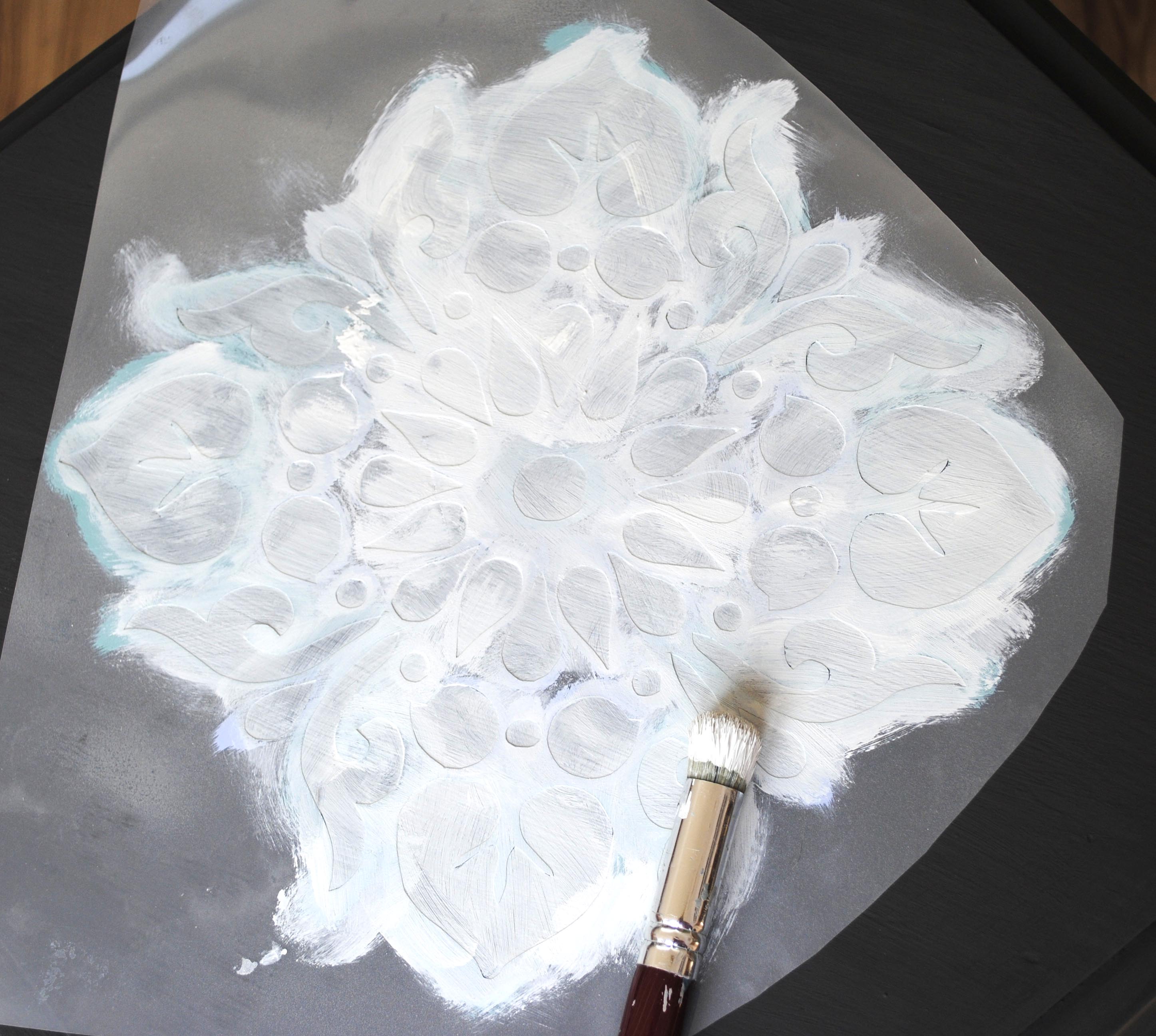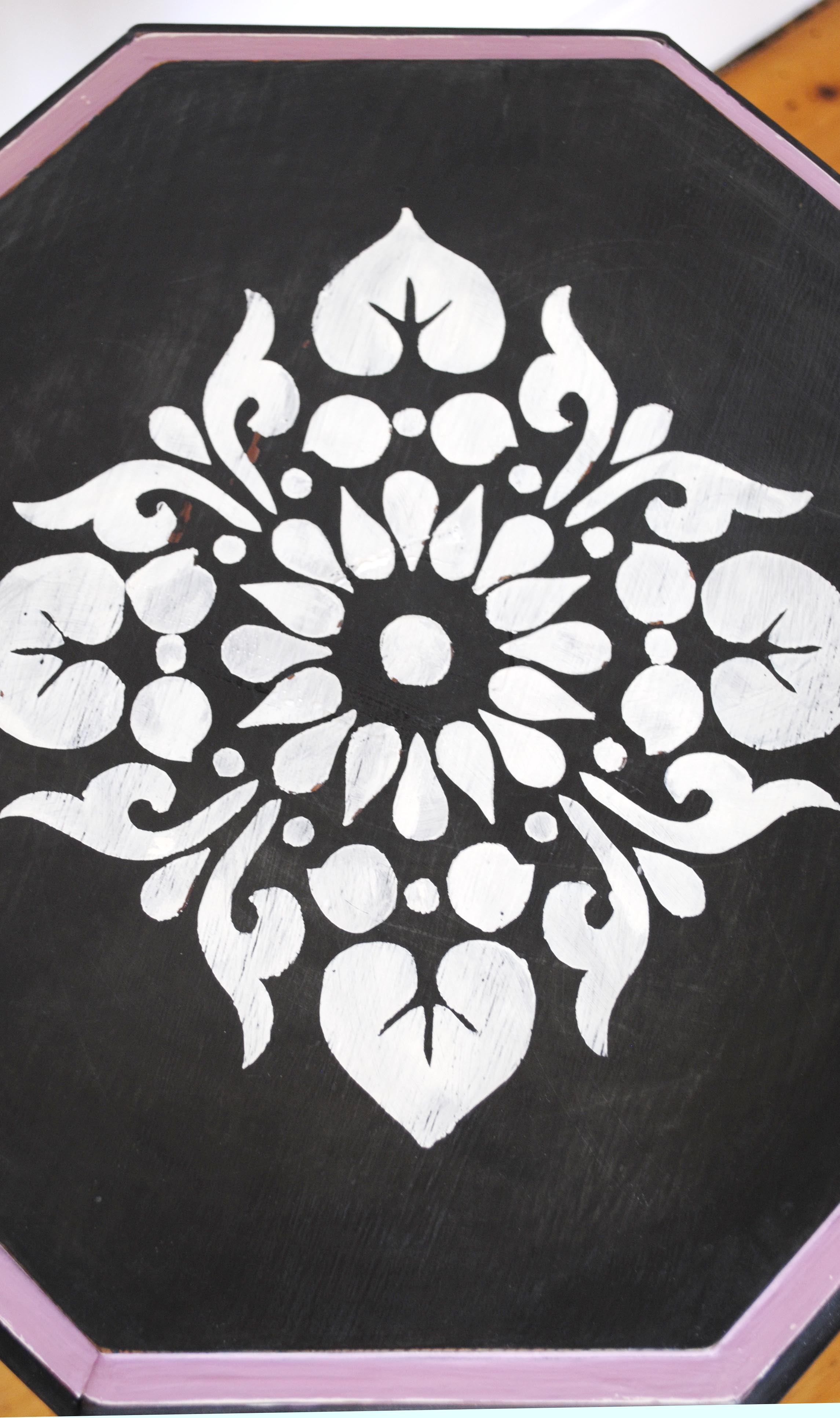 I applied the stencil and sanded it down quite a lot to give it a rustic feel.