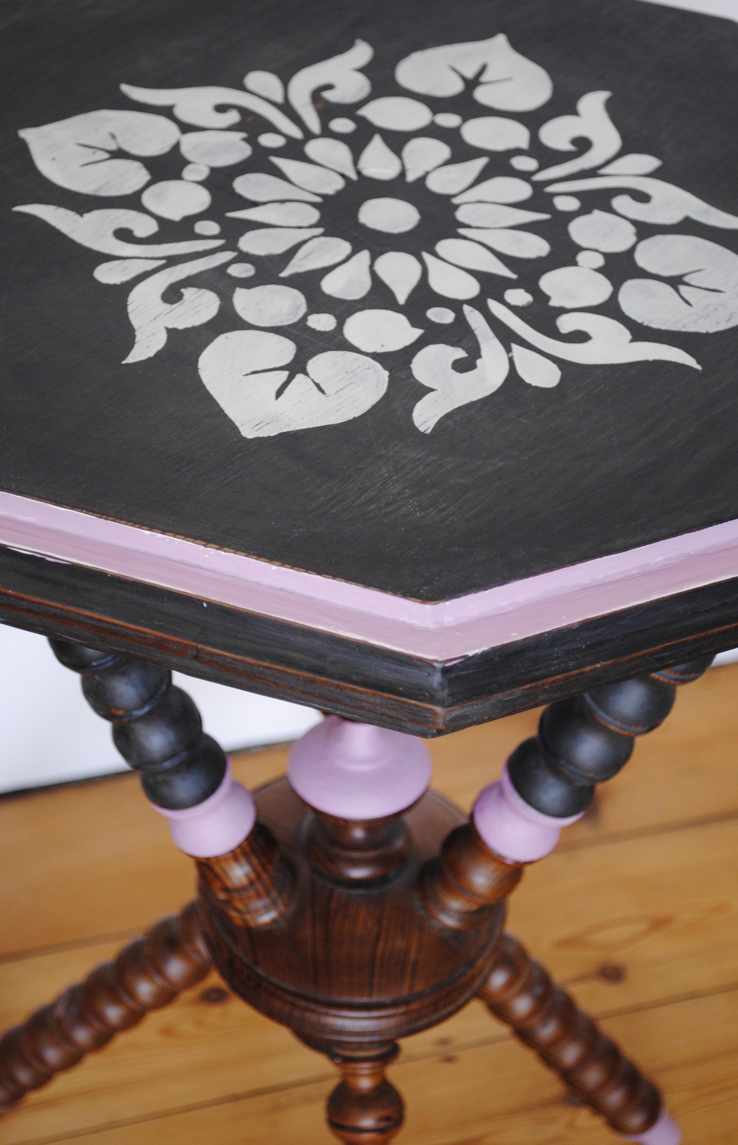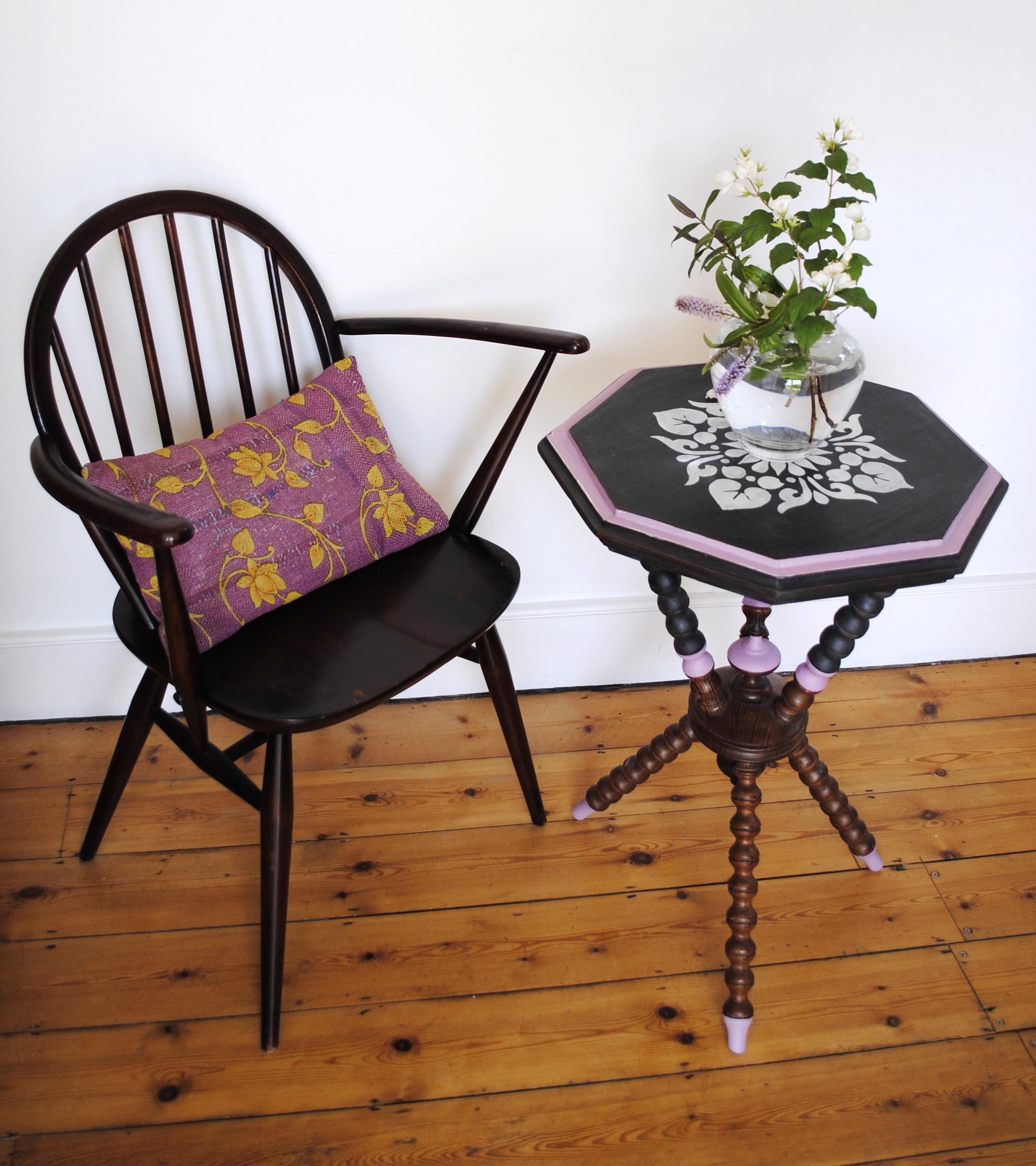 I have used a combination of Annie Sloan’s Chalk Paint in Graphite, Old White and Henrietta. My mum would describe Henrietta as a ‘dusky pink’, such a good description.