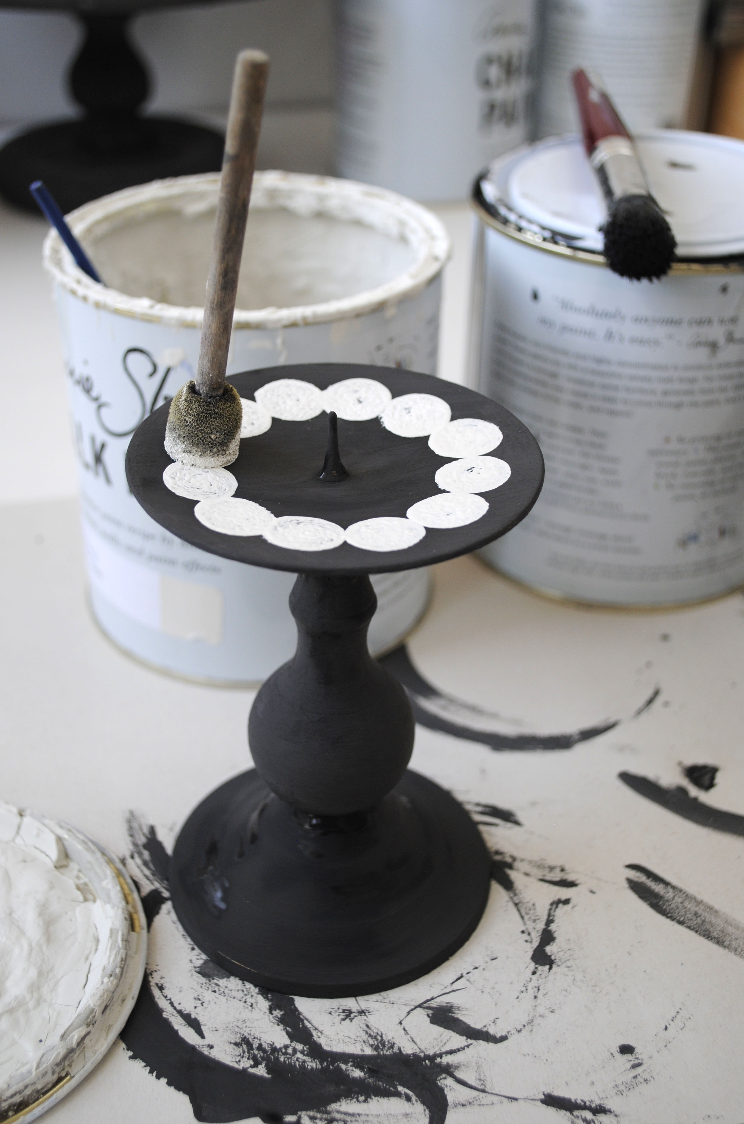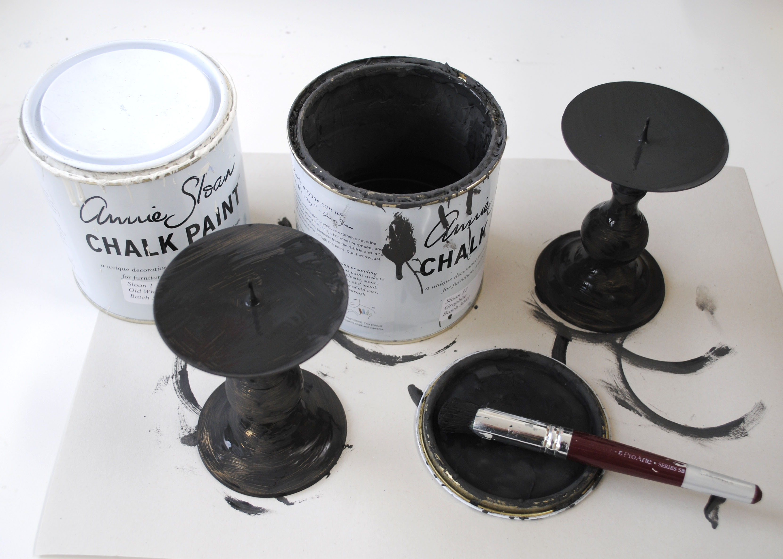 To begin with I painted a couple of coats of Annie Sloan’s Graphite Chalk Paint and then added the decorative detail using Old White. I love the graphic quality of this colour combination. To finish, clear wax was applied with a brush, followed by a soft buffing with a clean cloth.