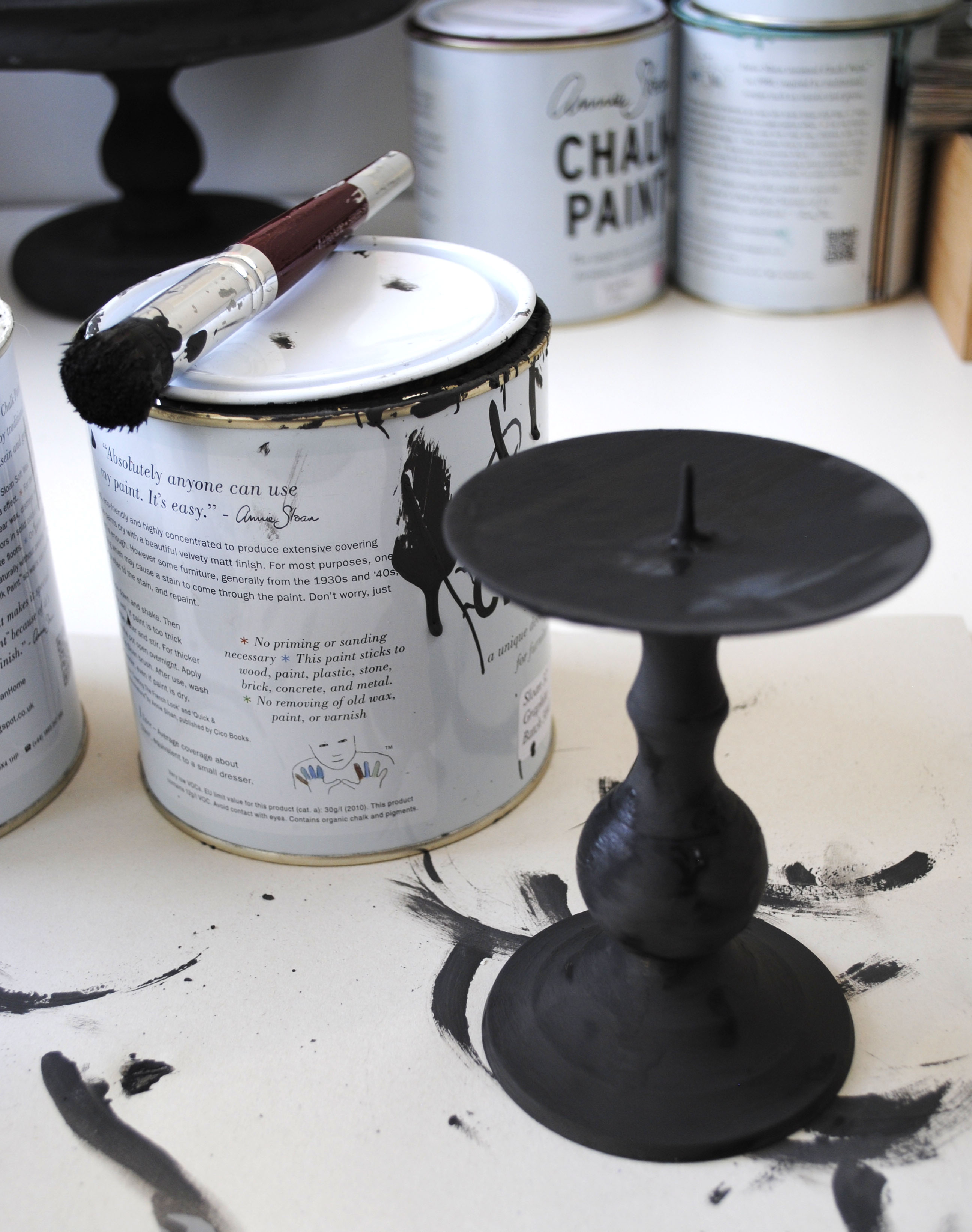 It is the first time I have painted on to metal with chalk paint before, though I knew it was possible.The first coat doesn’t cover very well and so you really need a good thick second coat. I am sure that it will chip off a little on the edges with time, but the brass showing through will only add to the effect.