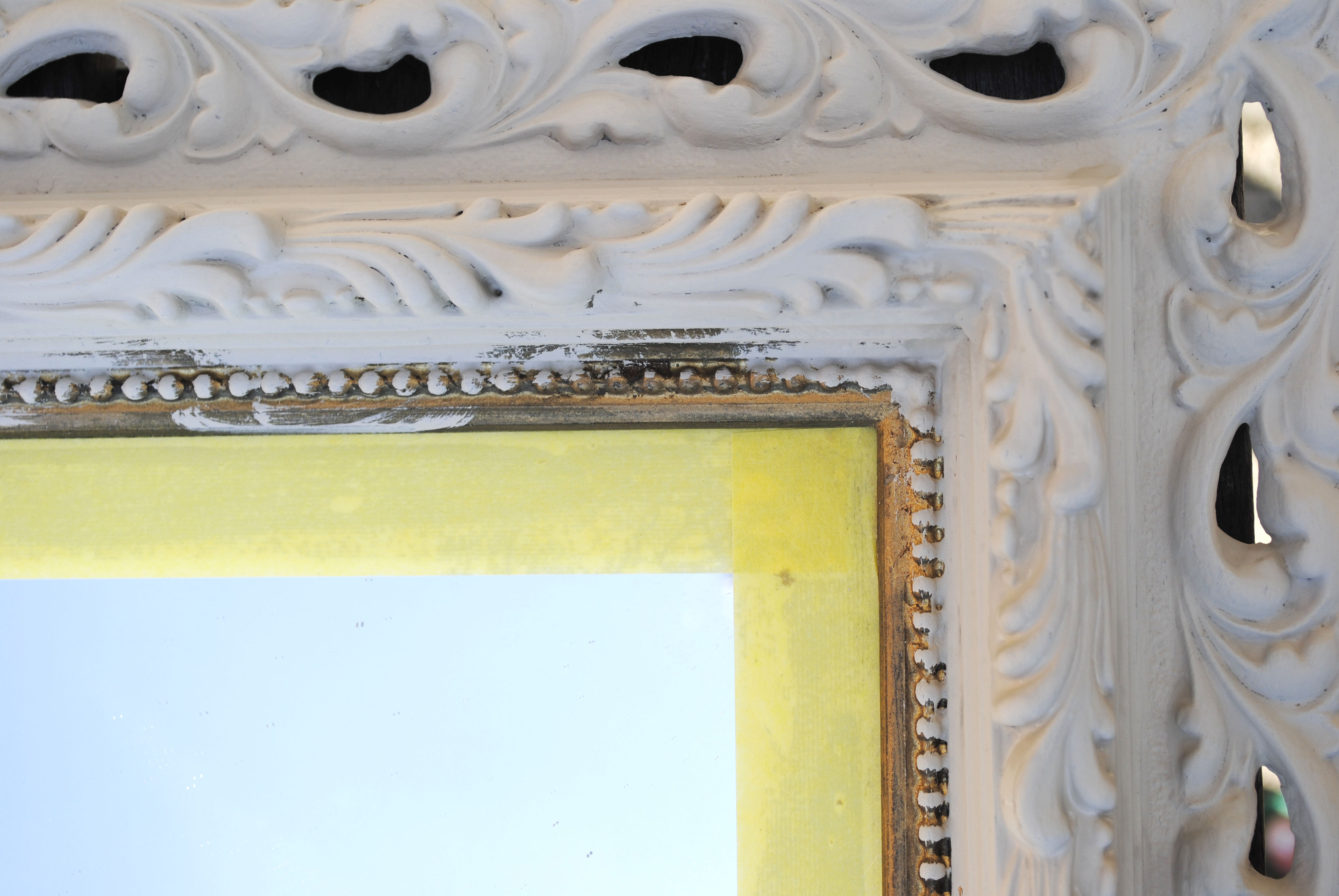 The first thing was to mask the mirror using low tack tape, before beginning to paint. In my excitement to see what it looked like, I removed the tape after the first coat of paint and then had to re-tape it for the second coat!