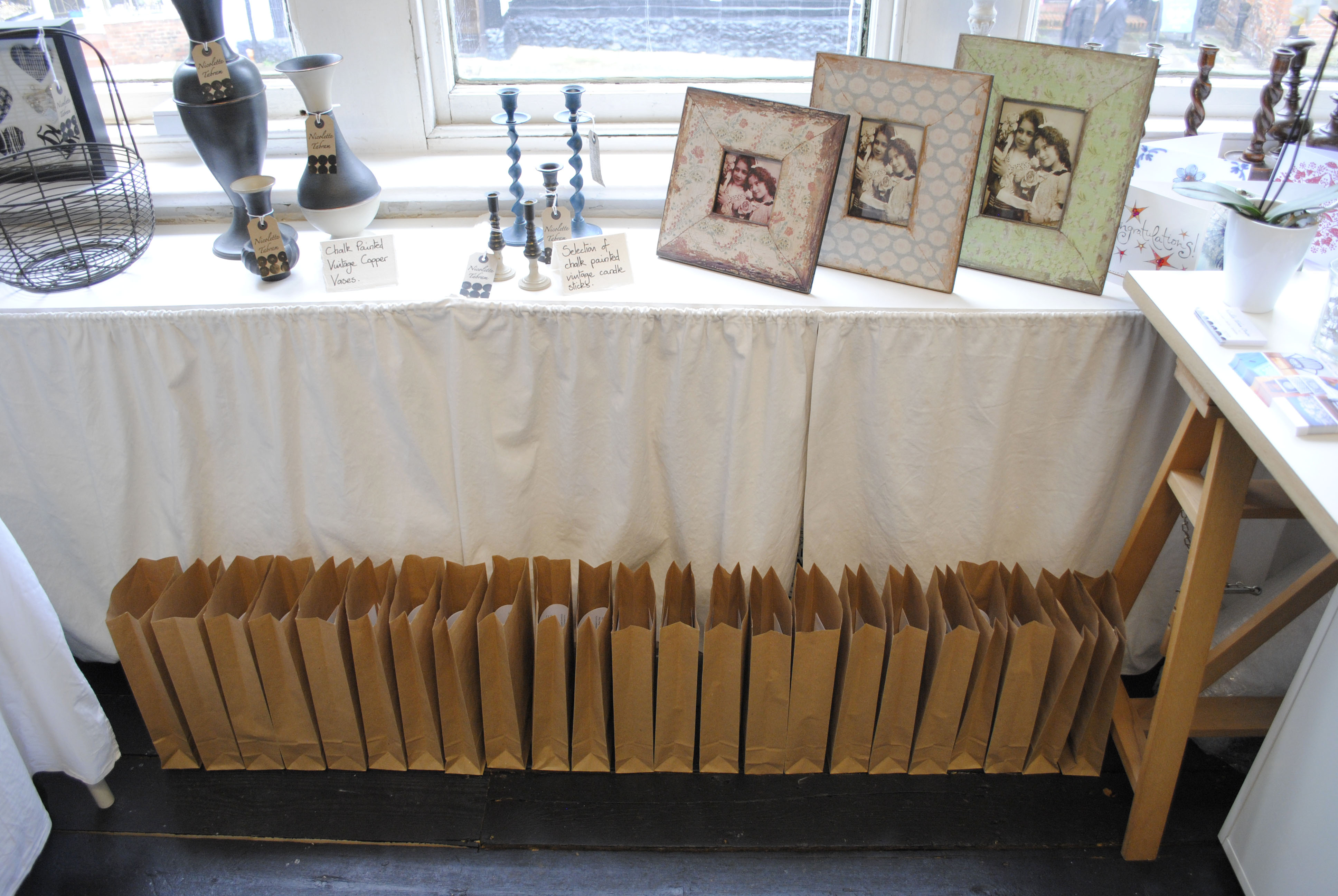 Lots of lovely people turned up, family and friends and a lot of people I had never met before. I met a lovely woman who is a gilder (I have asked her to run some workshops in the new year). At one point the shop was so packed you couldn’t move and you certainly couldn’t hear the music! Gradually people started drifting away and suddenly I thought ‘photos!!!!’