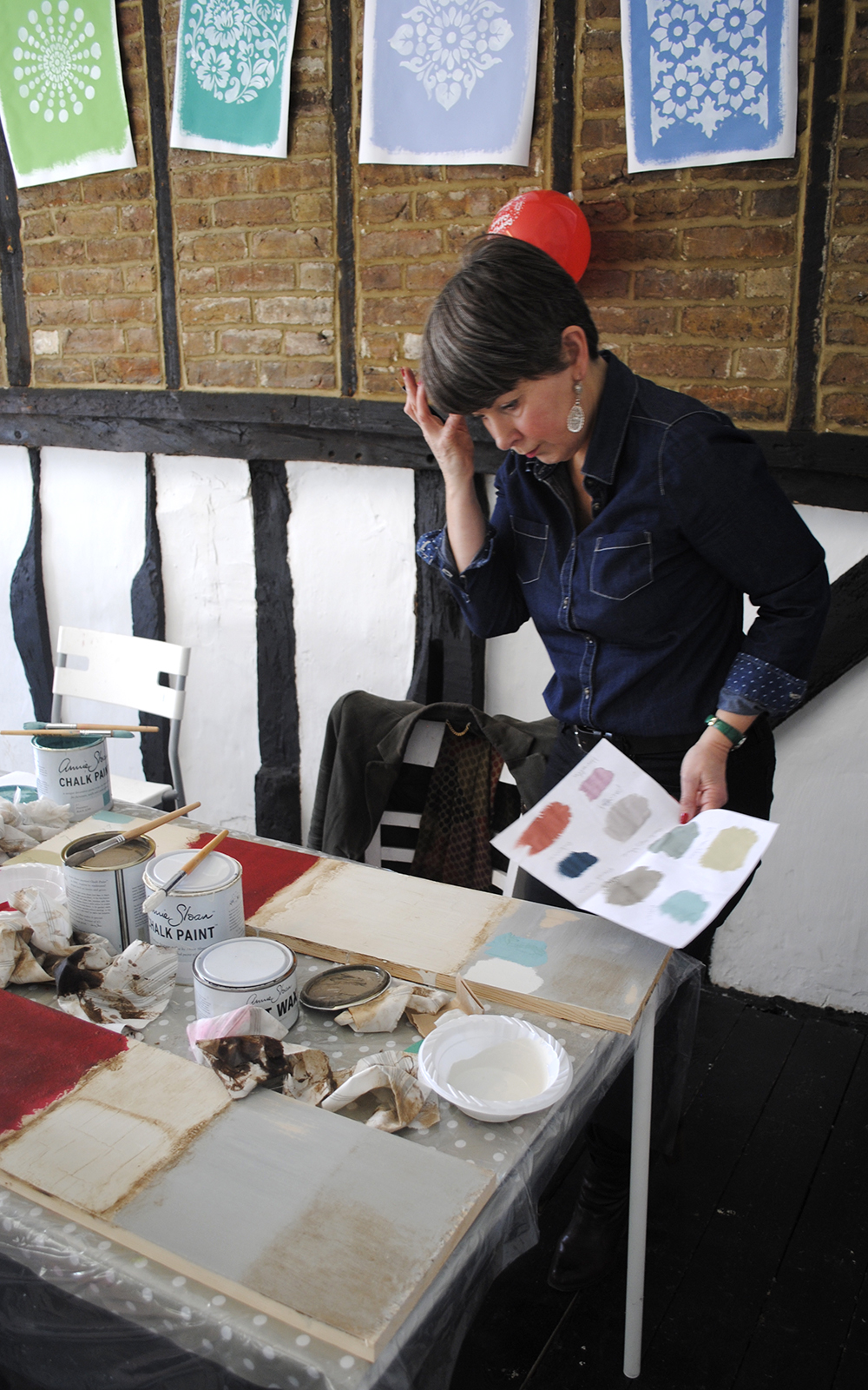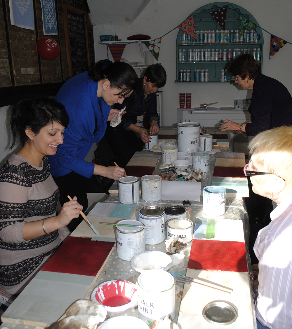 I ran an Annie Sloan Chalk Paint class on Saturday morning in the workshop above the shop. The class was full and the women were lovely (I never have any men attending!) They arrived at 10:00am and we worked our way through the basic paint techniques, working on wooden boards for the duration of the morning.