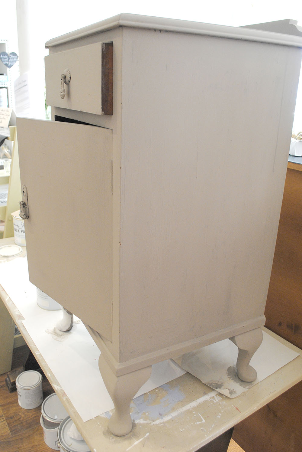 This side cupboard has been painted with Annie Sloan Chalk Paint in French Linen with a second coat in Old White. The interior is painted in French Linen. I have applied both clear and dark wax to the exterior and then sanded the edges quite heavily to create a lovely aged effect. I really like this cupboard, but I couldn’t say that I have never seen anything like it before and I wouldn’t say I felt excited by it.