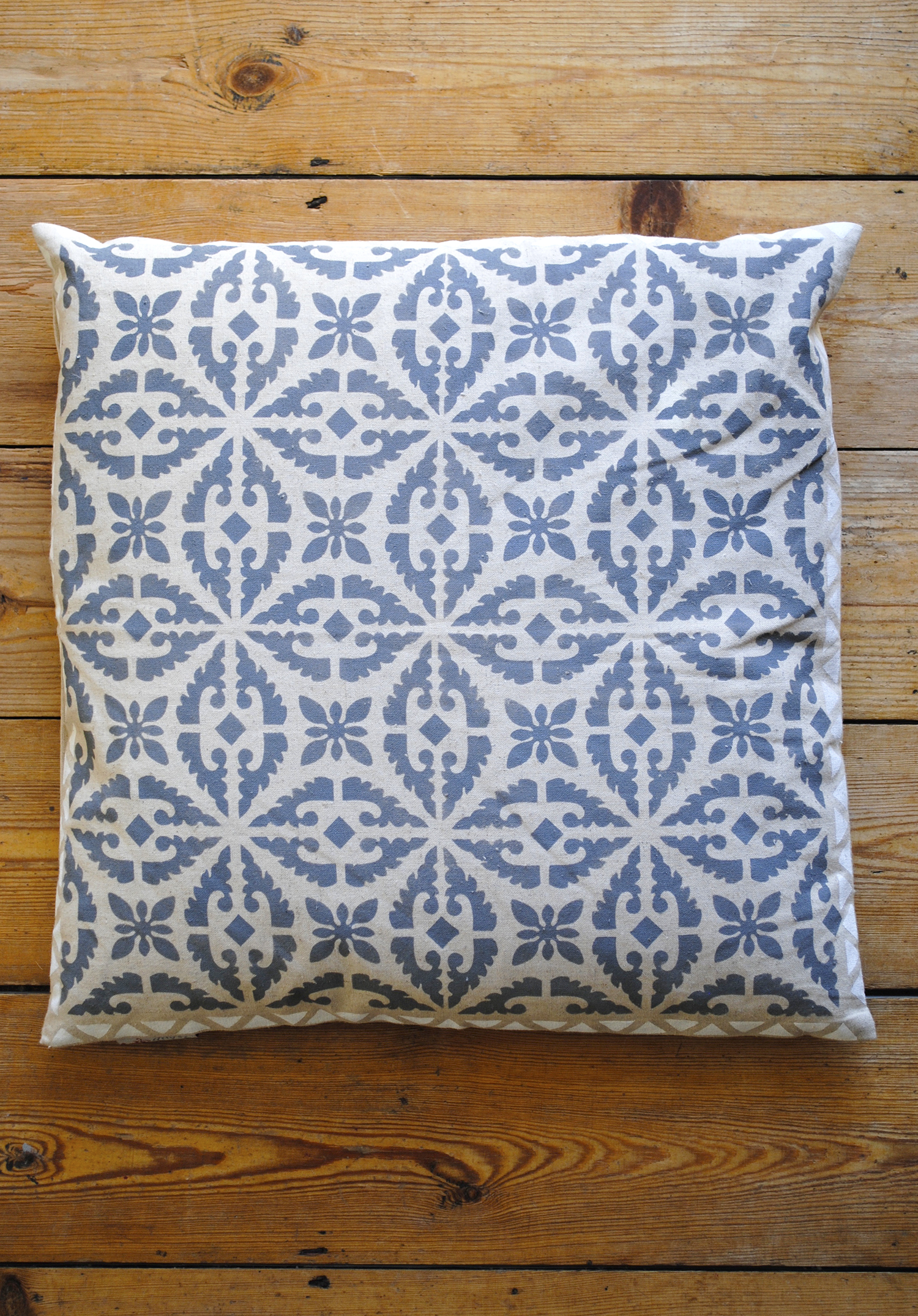 - Carefully remove the stencil and once dry press the cover using a hot iron then fill with a lovely squishy pad.I always use a feather filled pad.