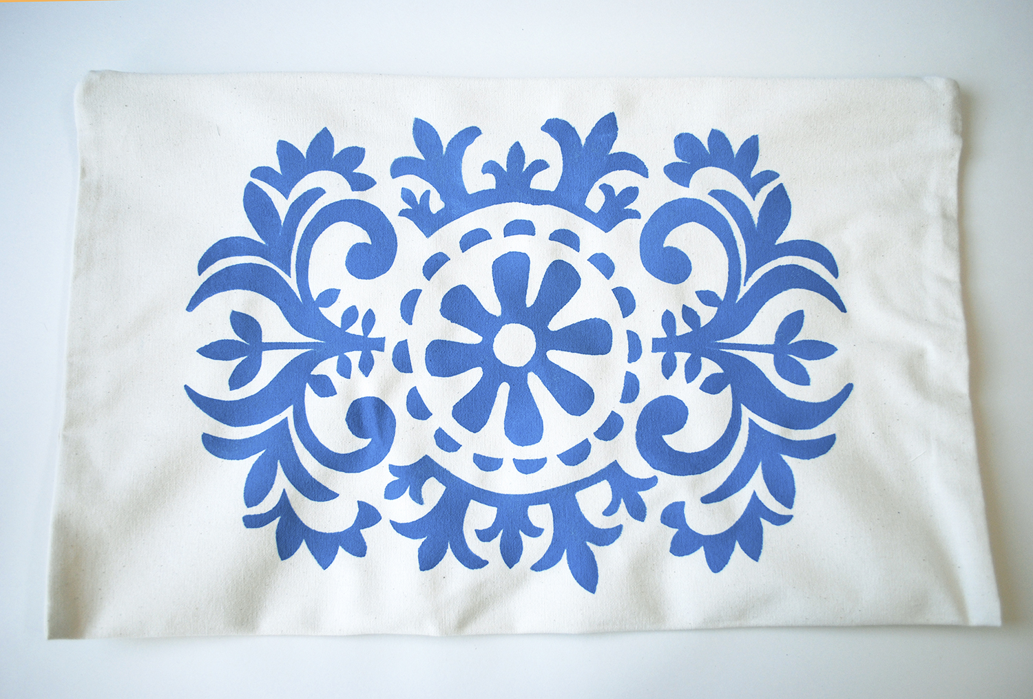 - On a clean surface smooth out the cushion cover. If the fabric is thin place some paper inside the cover to prevent the paint from bleeding through. This is not necessary on thicker fabric such as canvas though.